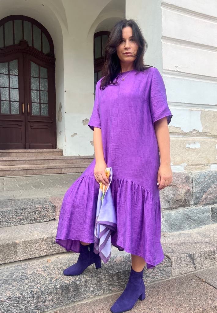 Ši suknelė išskirtinė ne tik spalva, bet ir siluetu – lengvai krentanti, kvėpuojanti.
