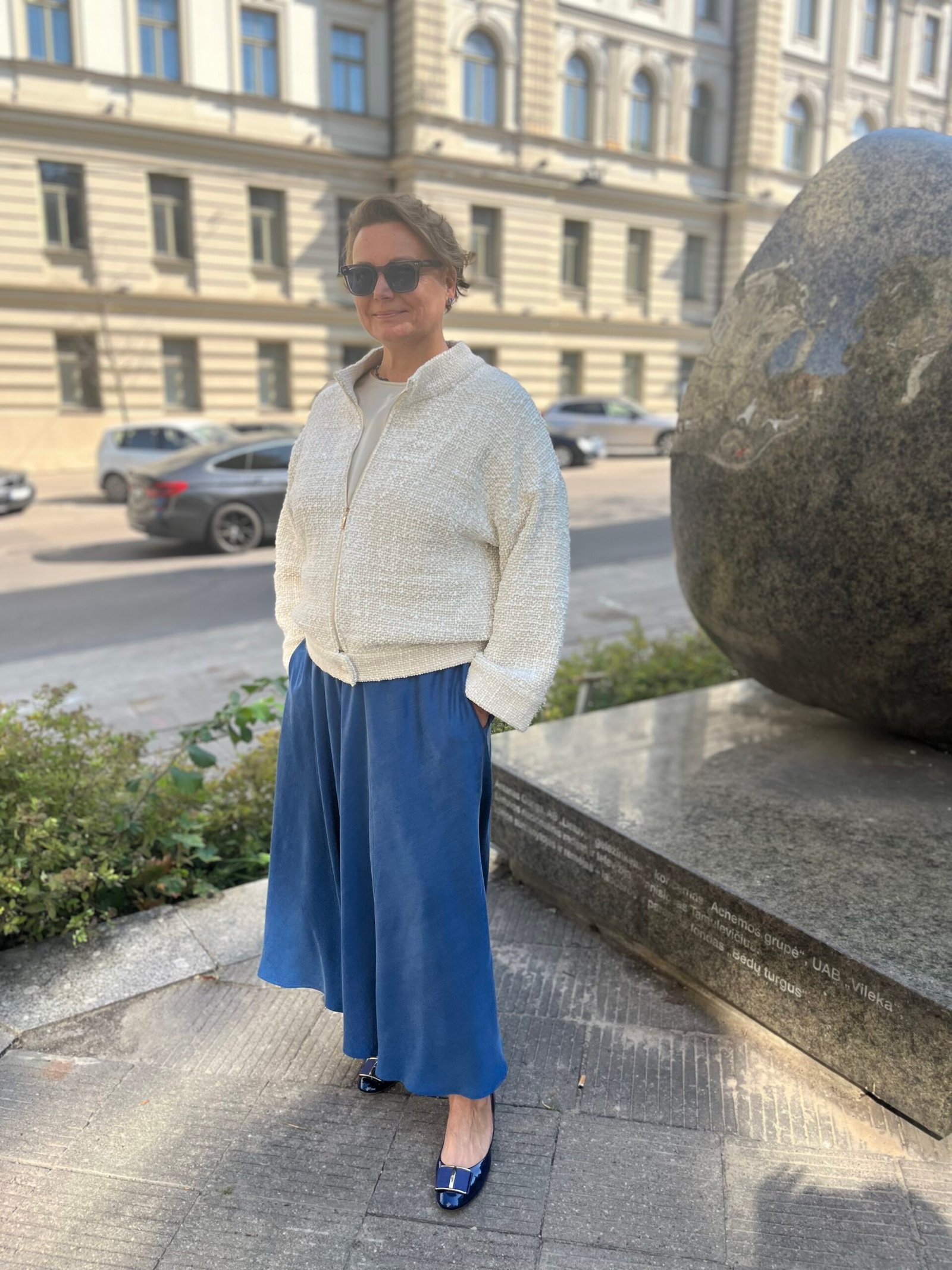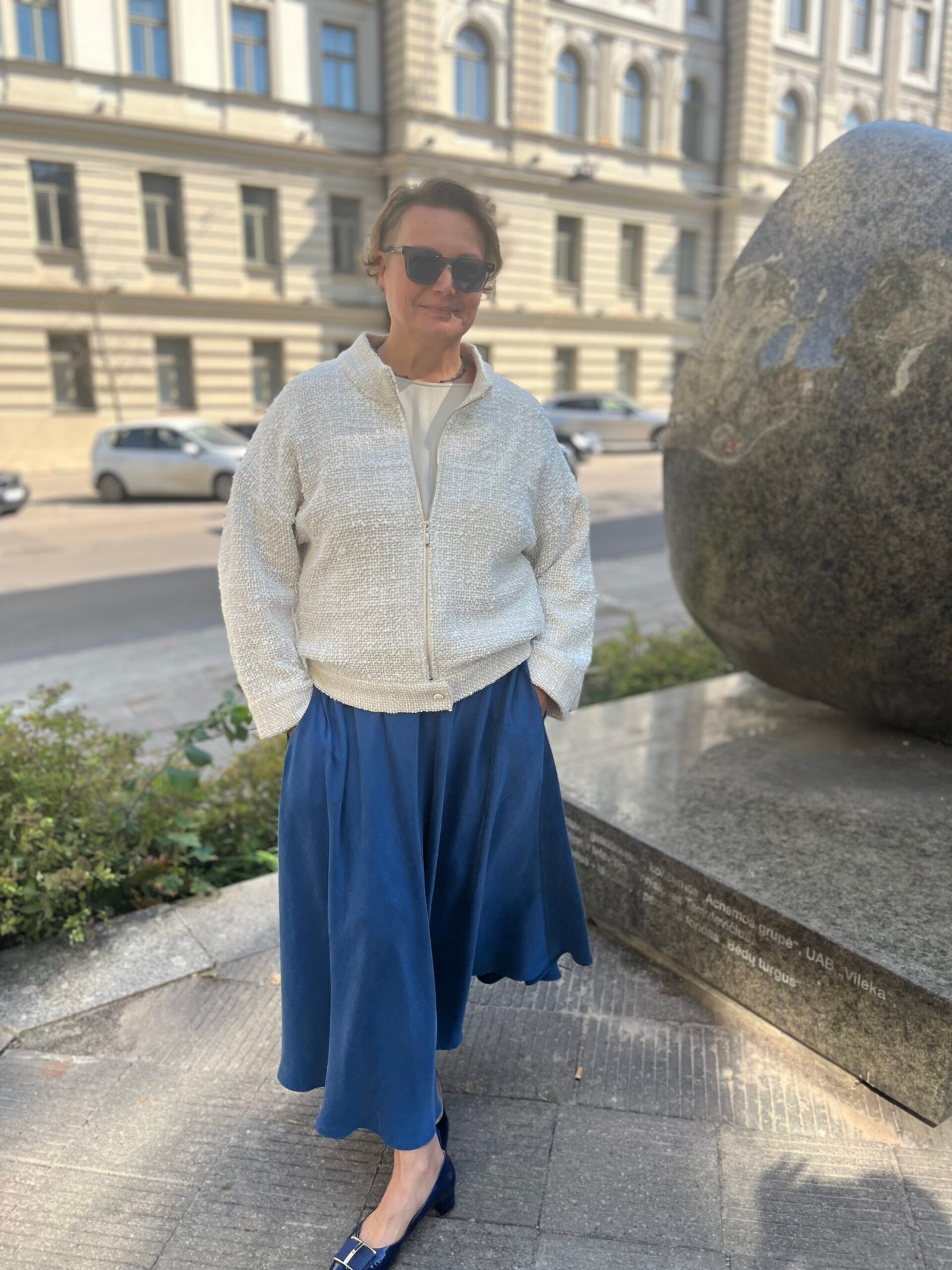 Šlapio šilko sijonas, nepalieka abejingų, kadangi audinys turi prabangų švytėjimą, kuris gražiai atsiskleidžia judesyje. Kiekvinas žingsnis – tai tarsi lengvas šilko šokis.