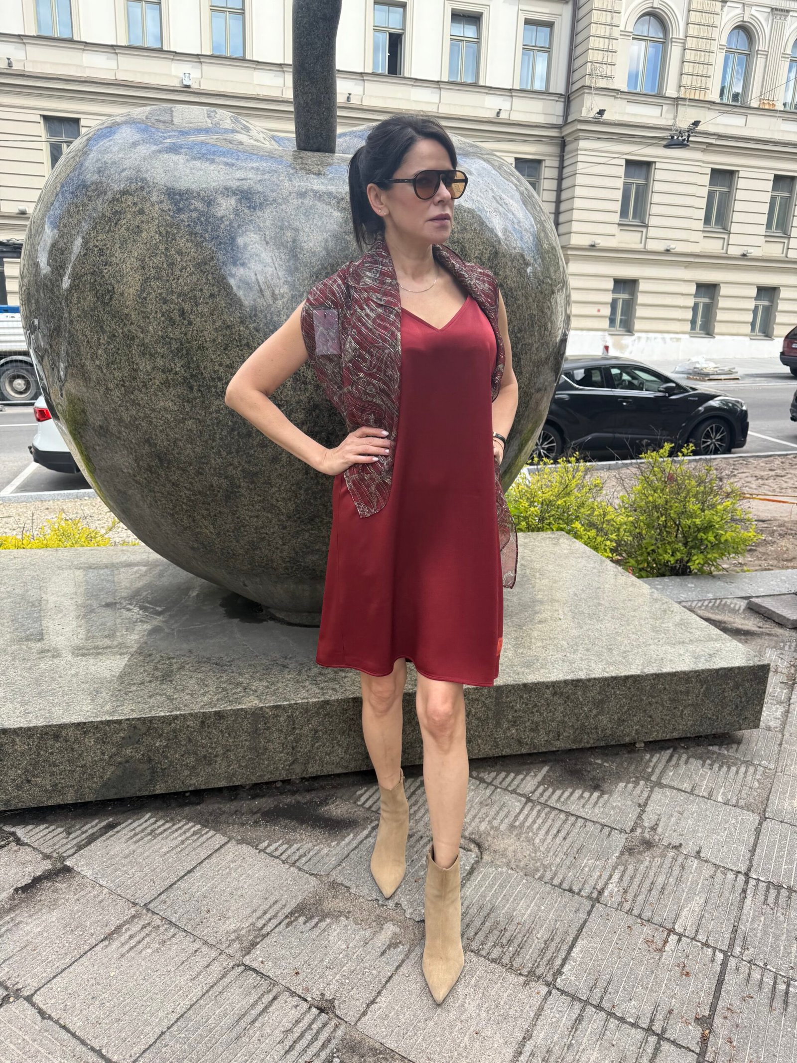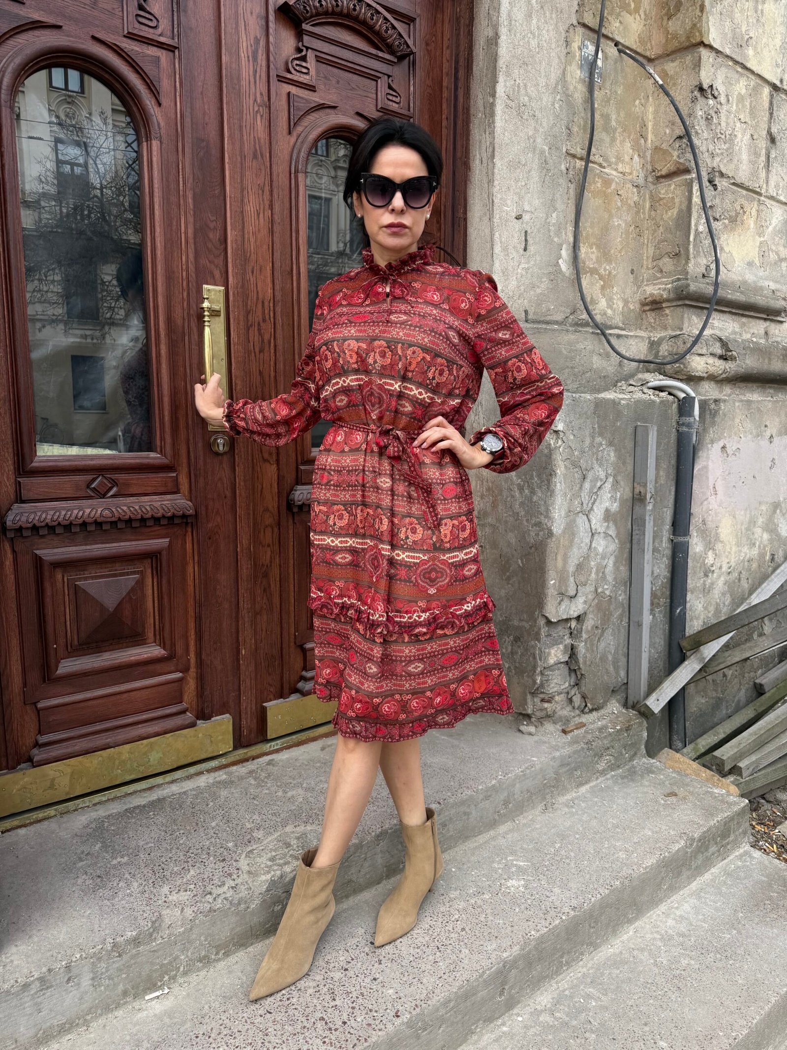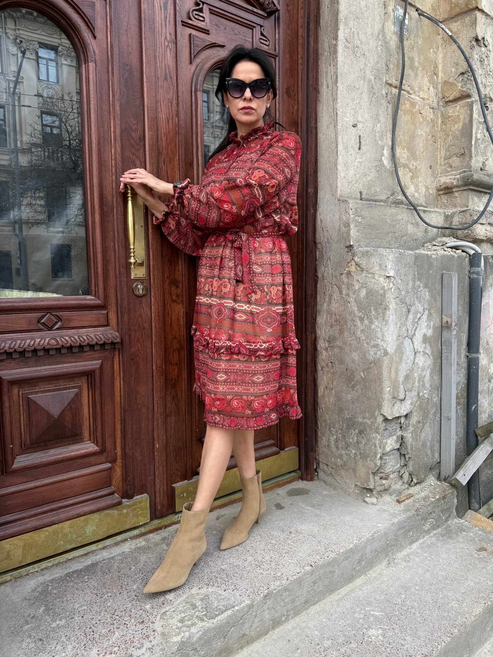 Lengvas, minkštas šifonas subtiliai krenta ir suteikia įvaizdžiui lengvumo bei elegancijos. Natūralios viskozės pamušalas – švelnus kūnui, kvėpuojantis ir malonus dėvėti.