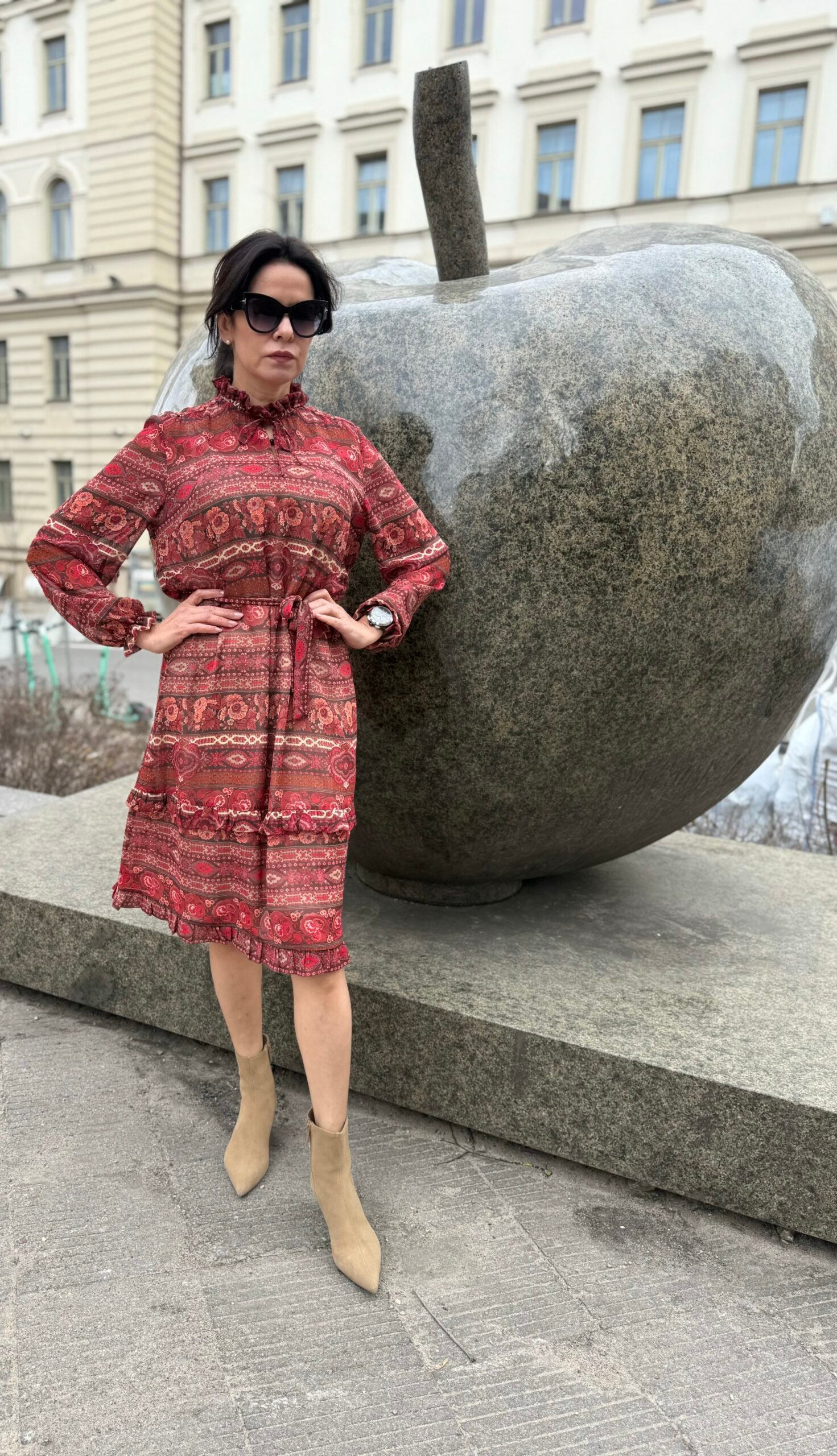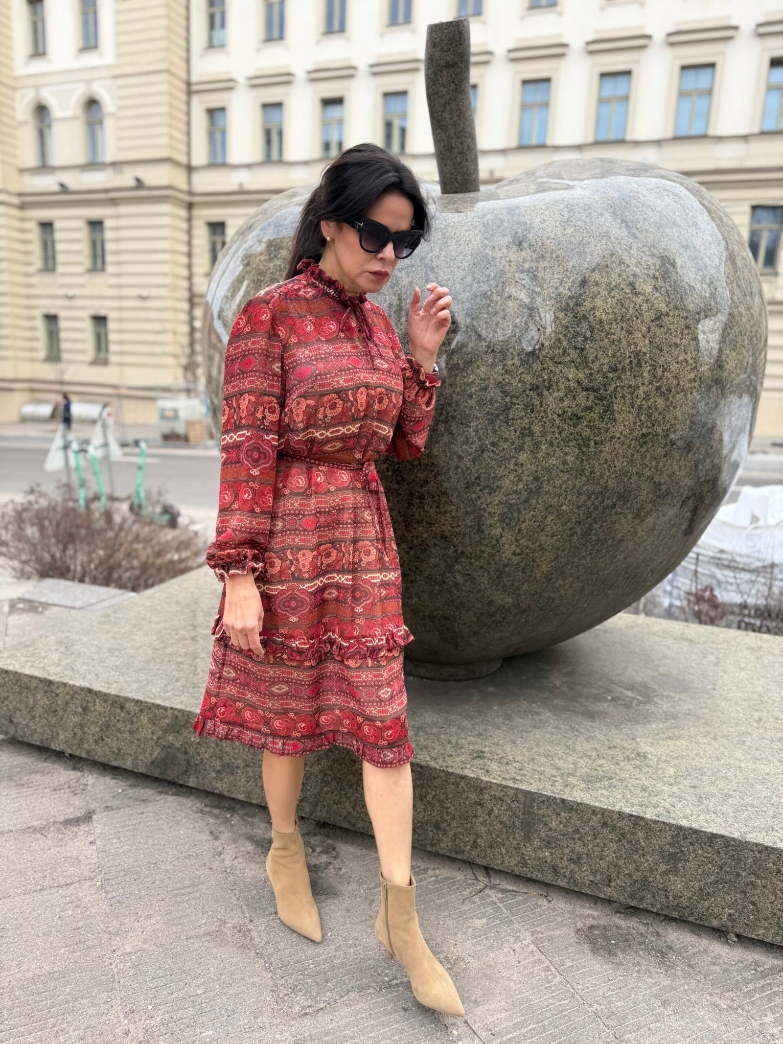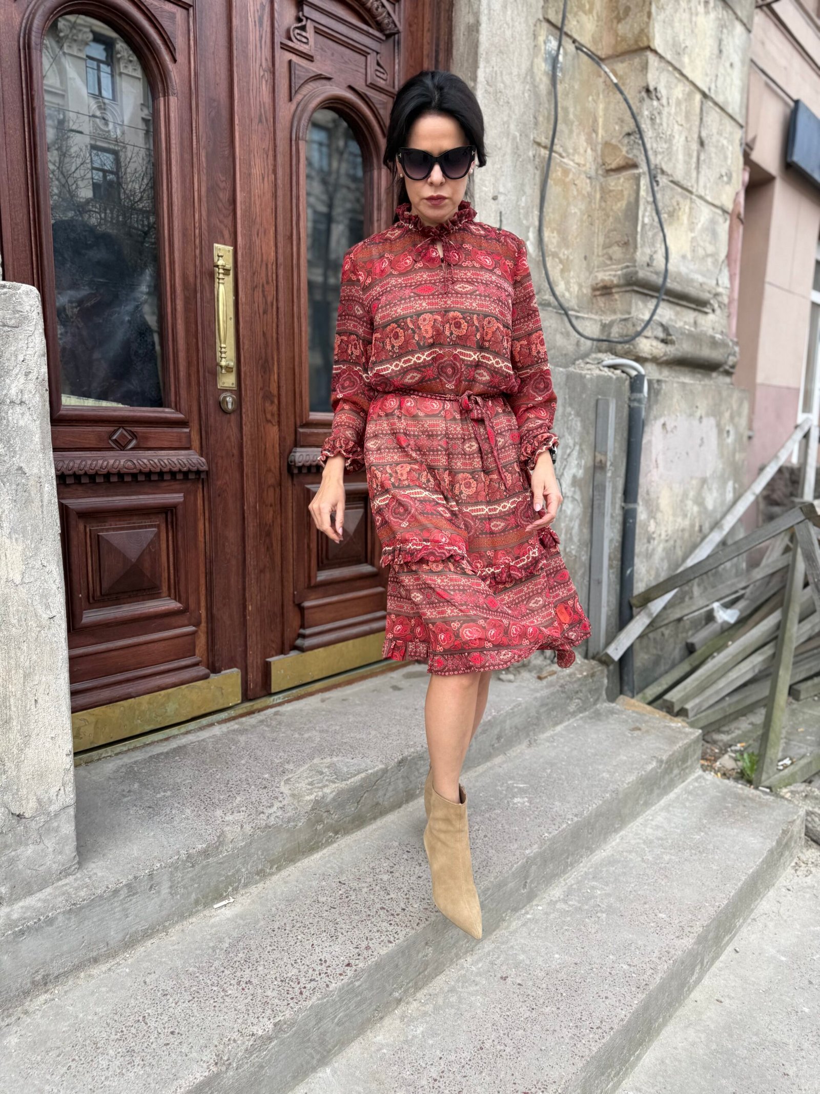 Lengvas, minkštas šifonas subtiliai krenta ir suteikia įvaizdžiui lengvumo bei elegancijos. Natūralios viskozės pamušalas – švelnus kūnui, kvėpuojantis ir malonus dėvėti.