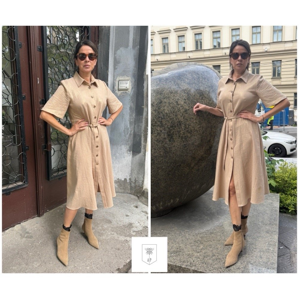 Siūta iš natūralaus pluošto – ekologiškos šukuotos medvilnės (muslino), todėl audinys leidžia odai kvėpuoti, yra lengvas, minkštas ir tobulai tinkantis vasarai.