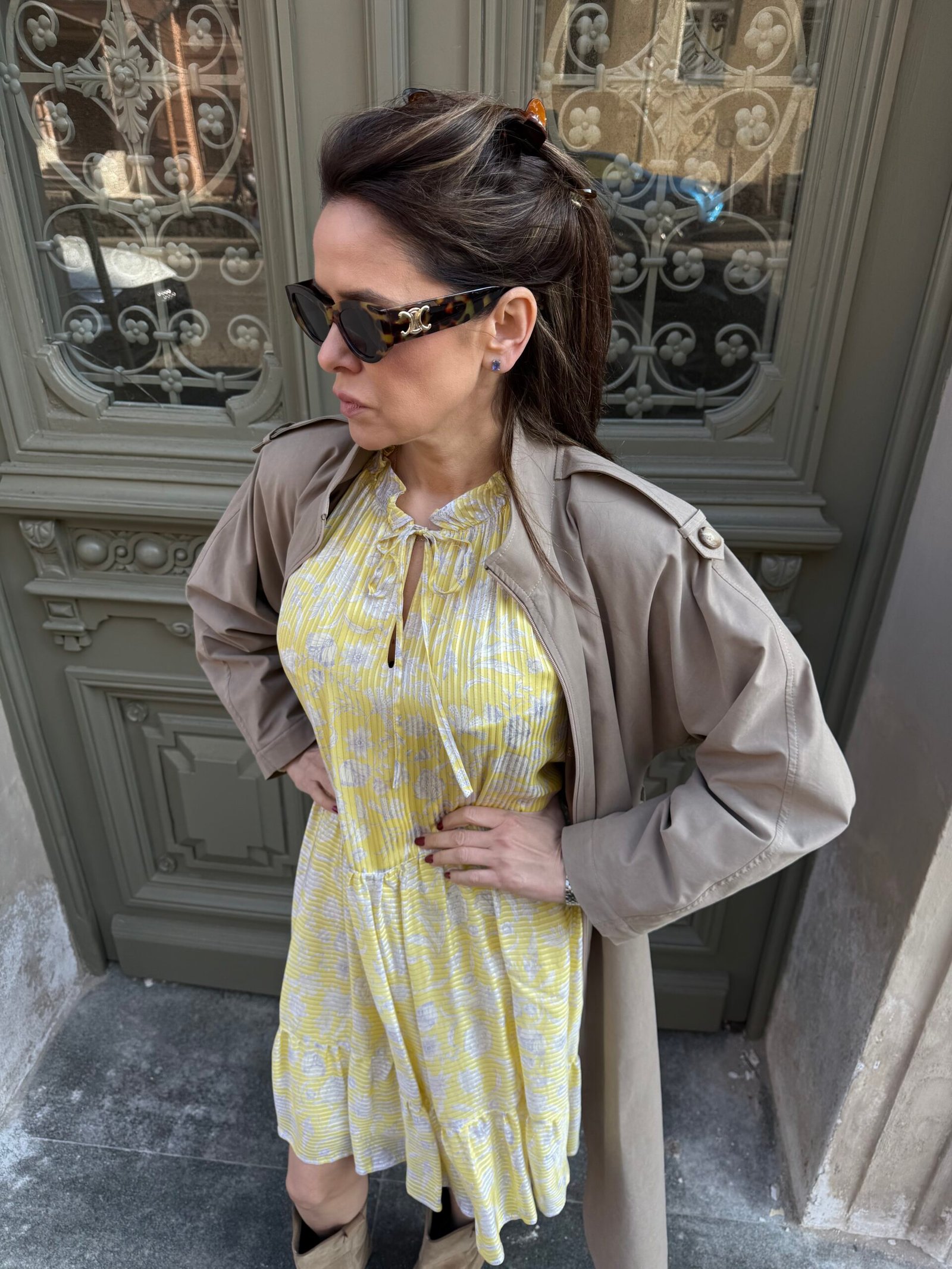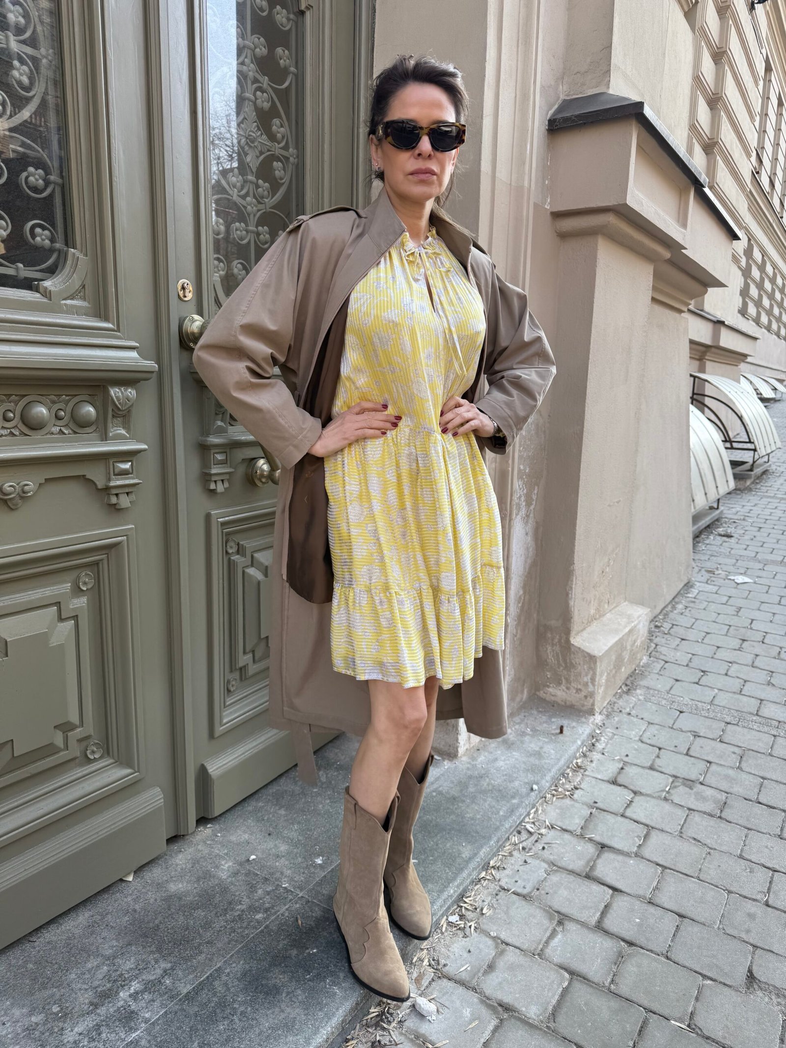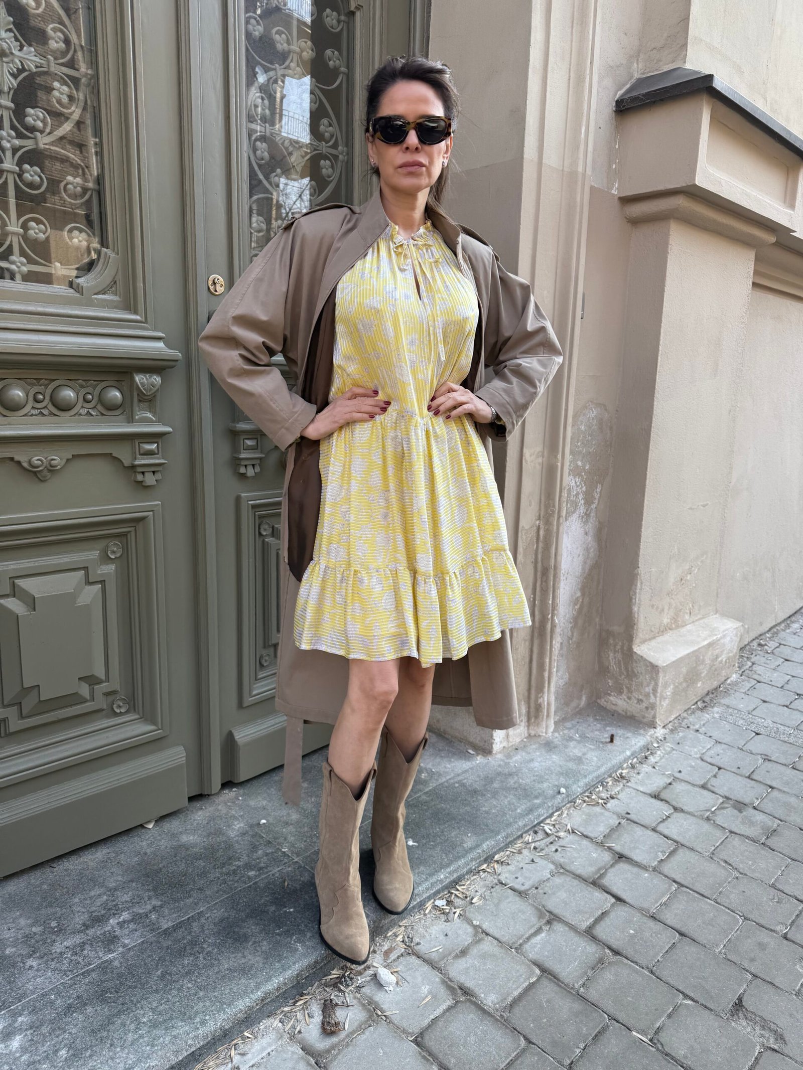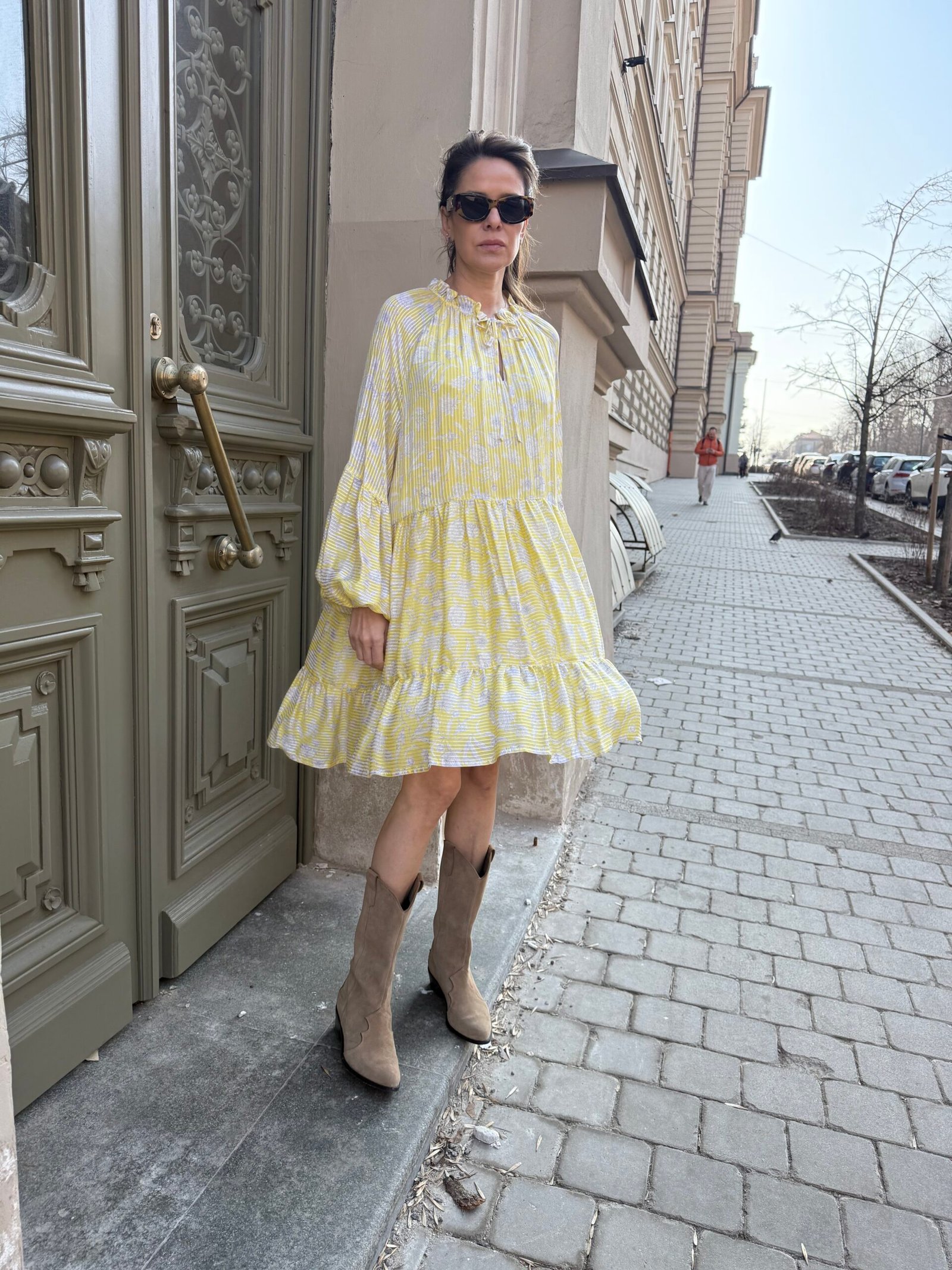 Nuostabi šilko ir viskozės suknelė su pamušalu. Švelnios, geltonos spalvos – spindinti, bet subtili. Ilgomis rankovėmis, krentanti lengvai ir moteriškai.