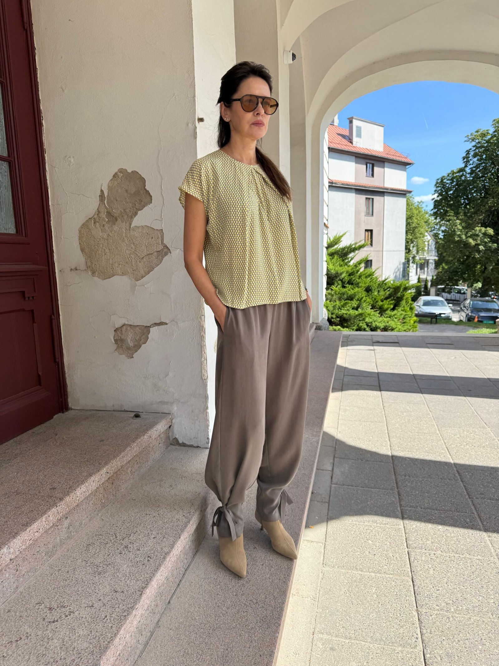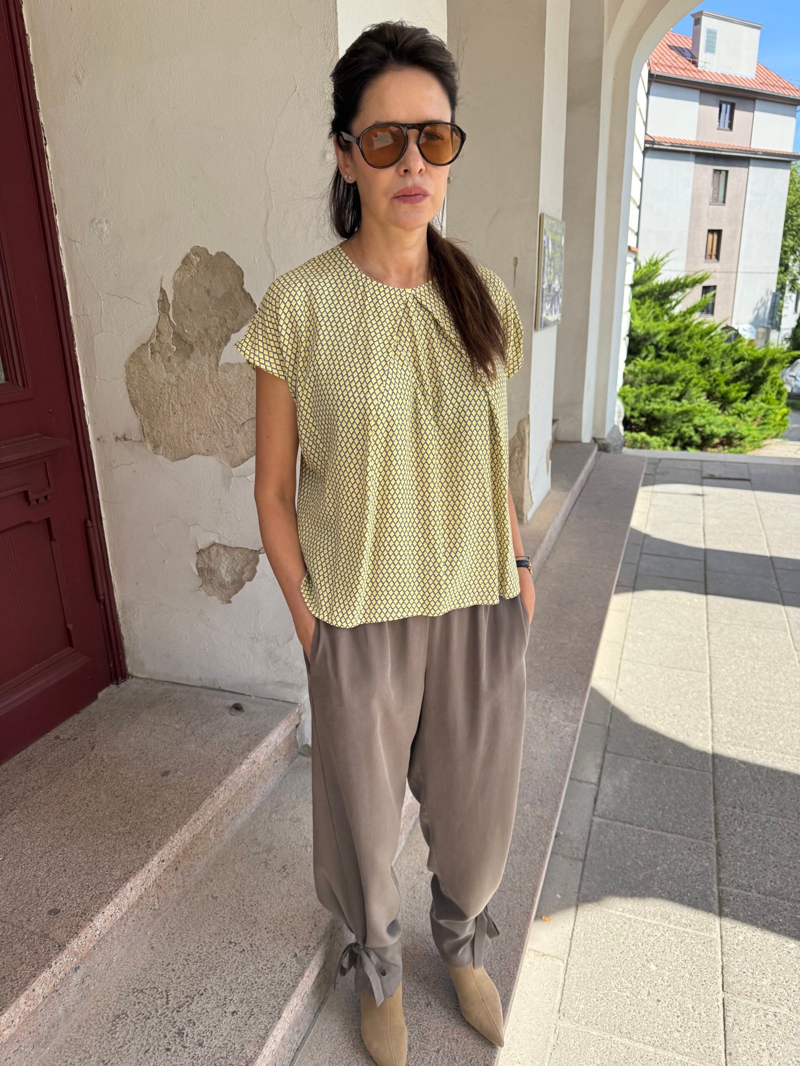 Ši palaidinė išskirtinė ne tik spalva ir raštu, bet ir siluetu – lengvai krentančiu.