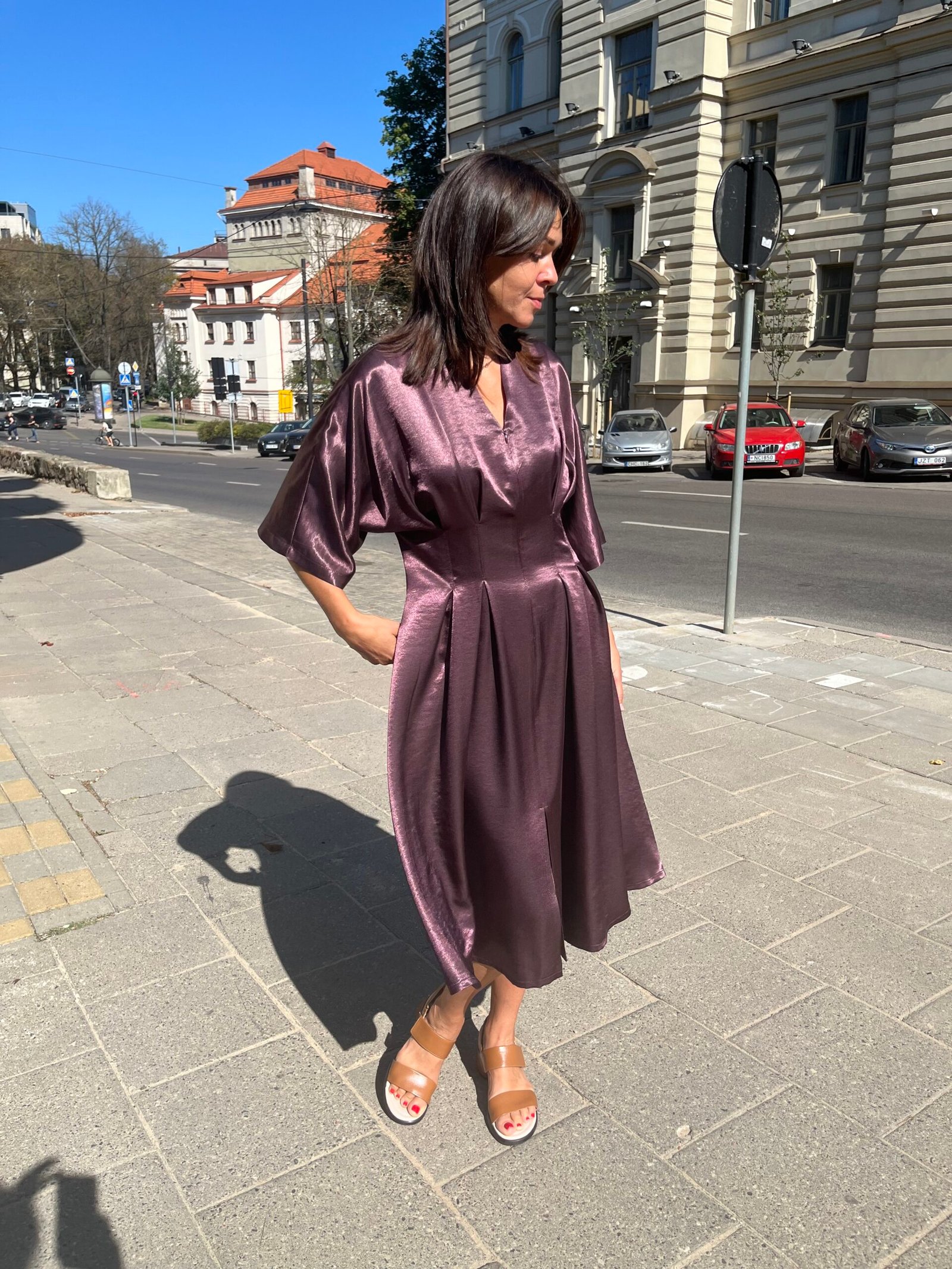 Ši suknelė išskirtinė ne tik spalva, bet ir siluetu – lengvai krentanti, kvėpuojanti, pagaminta iš 100% viskozės.