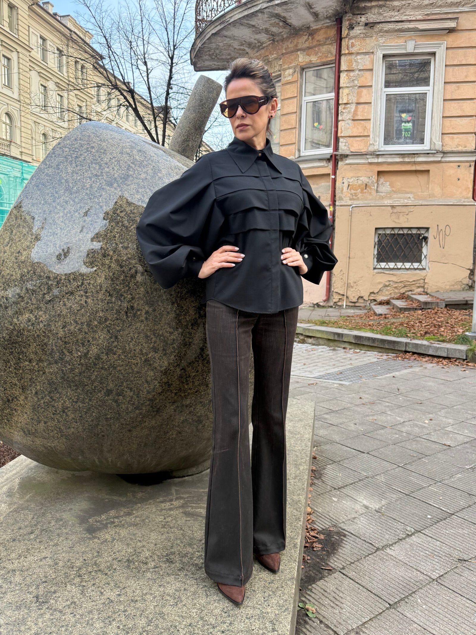 Juodi, puošniomis rankovėmis marškinukai su vilna – nesenstanti klasika. Audinio dar turime – nesant Jūsų dydžiui pasiūti užtruksime iki 1 savaitės
