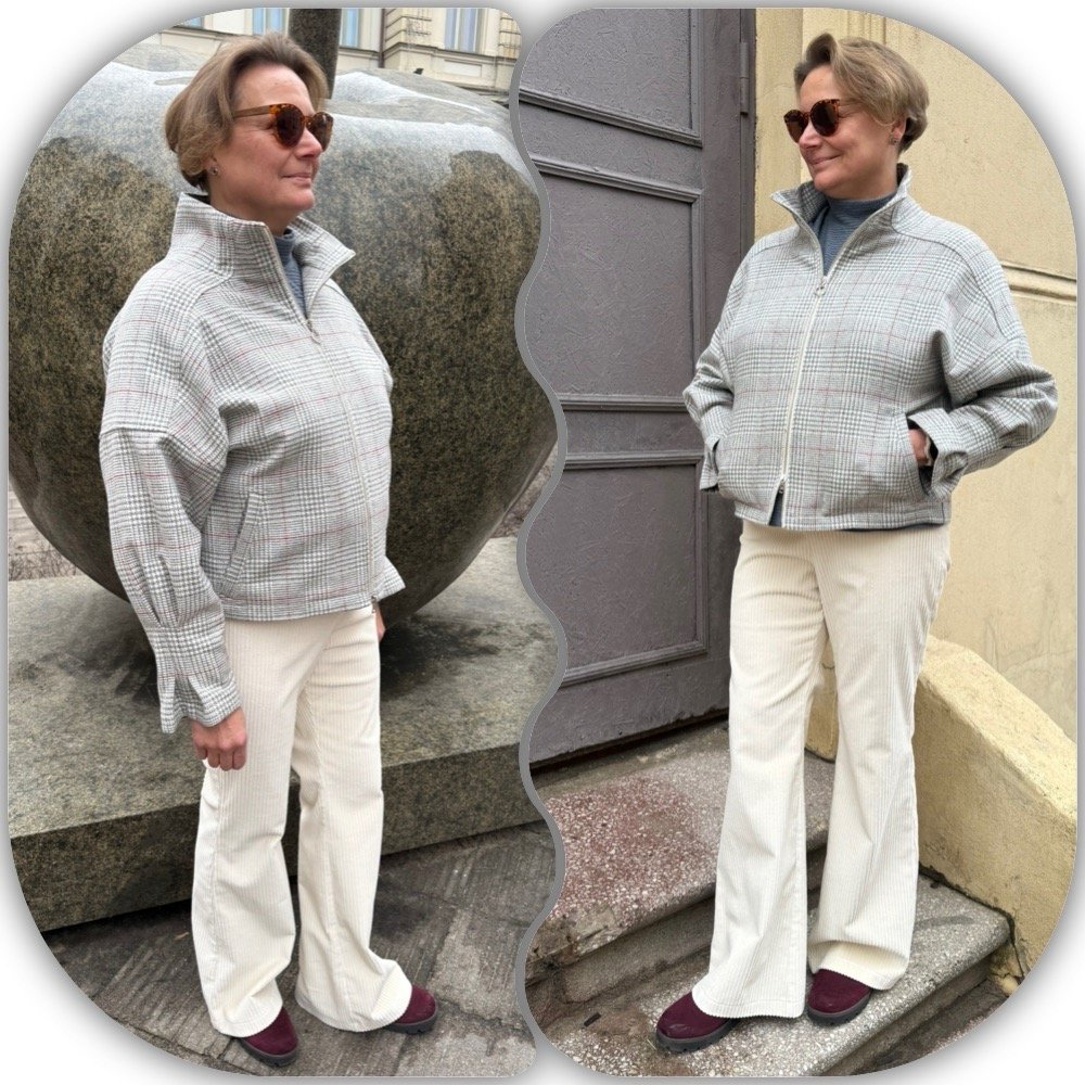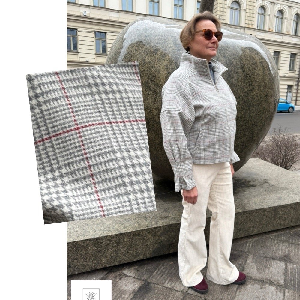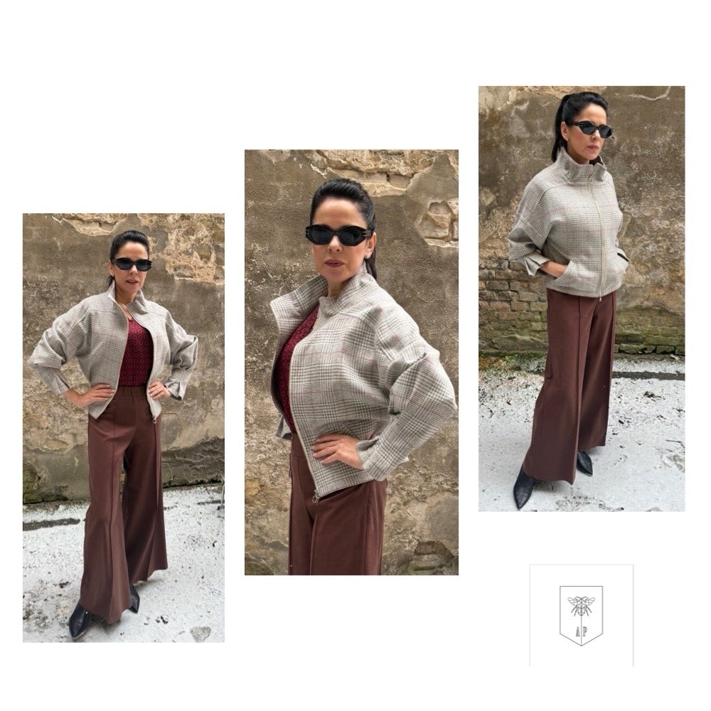 Stilinga, trumpa striukytė pasiūta iš aukštos kokybės 100% Itališkos vilnos audinio su klostuotom rankovėm.