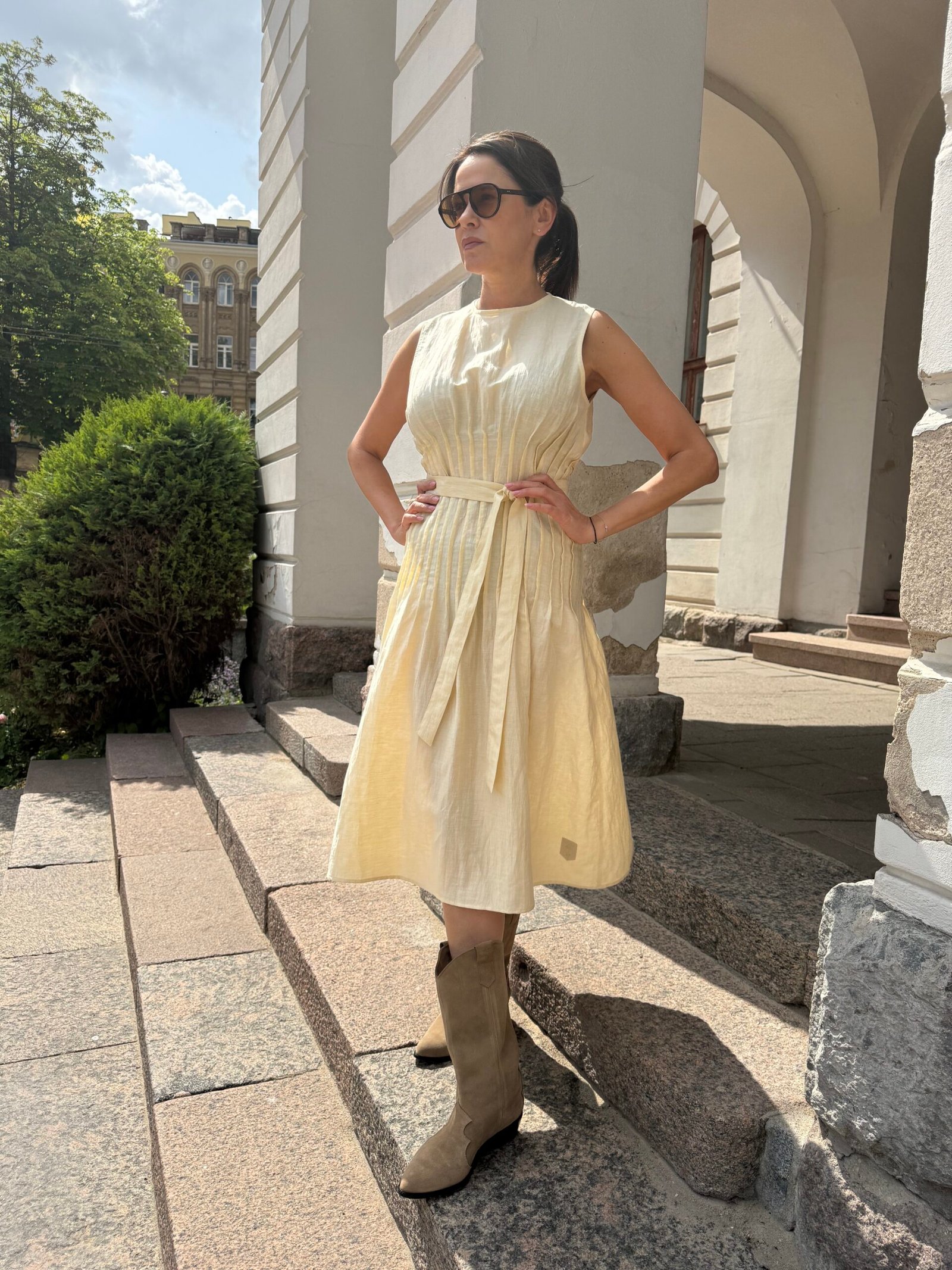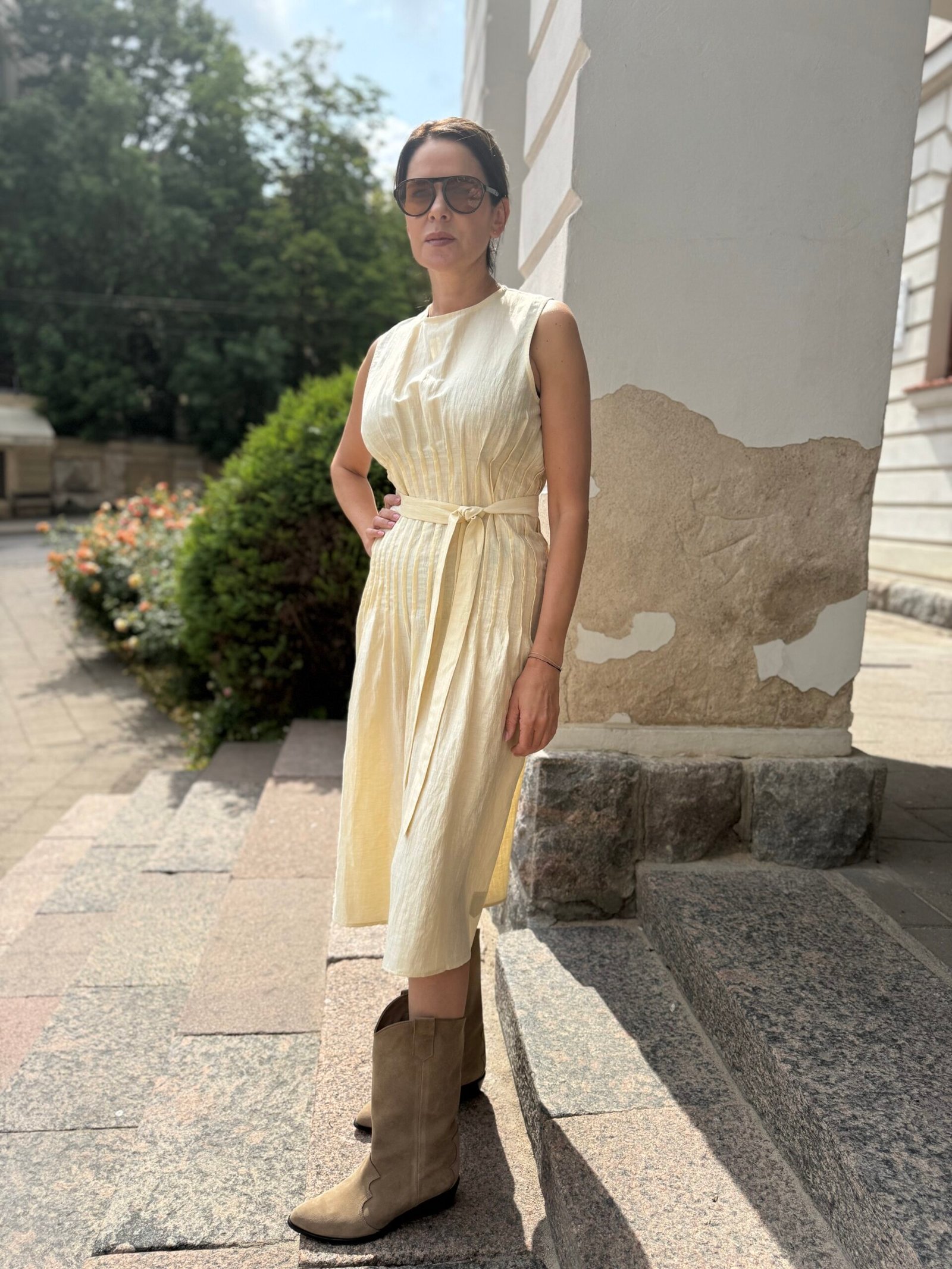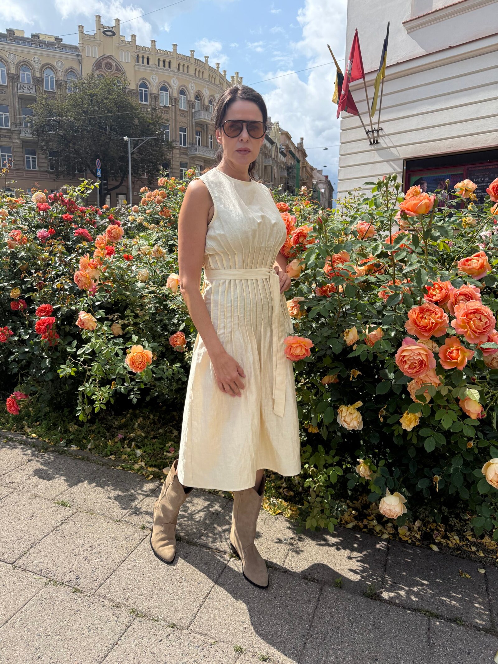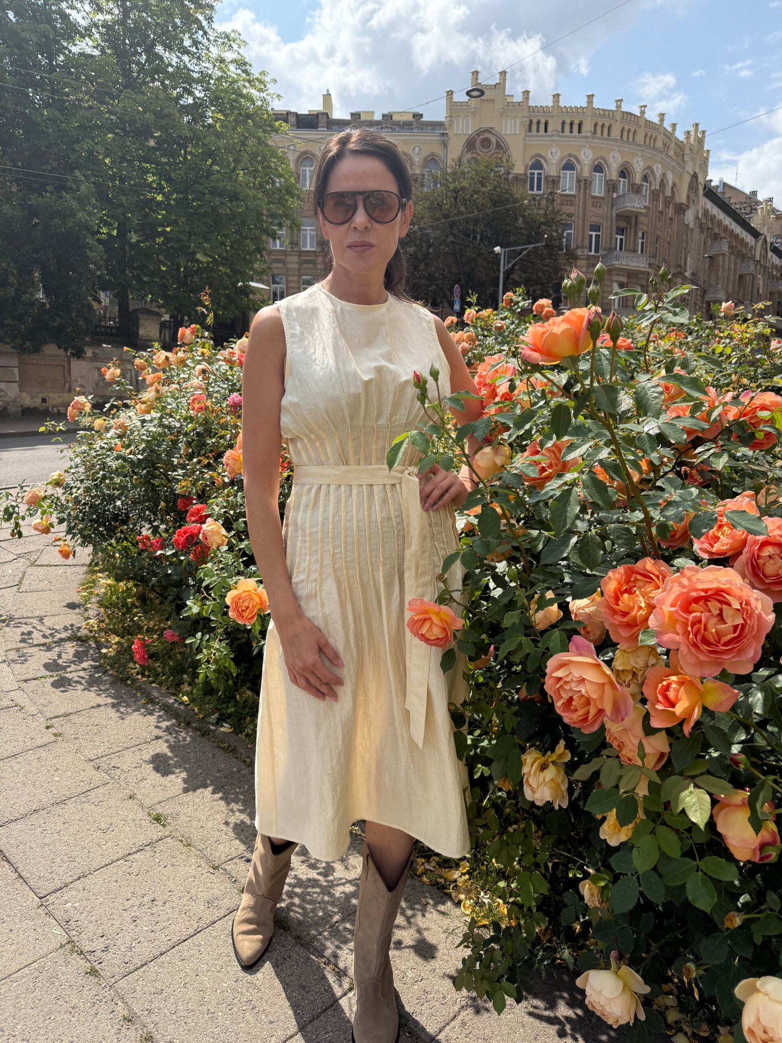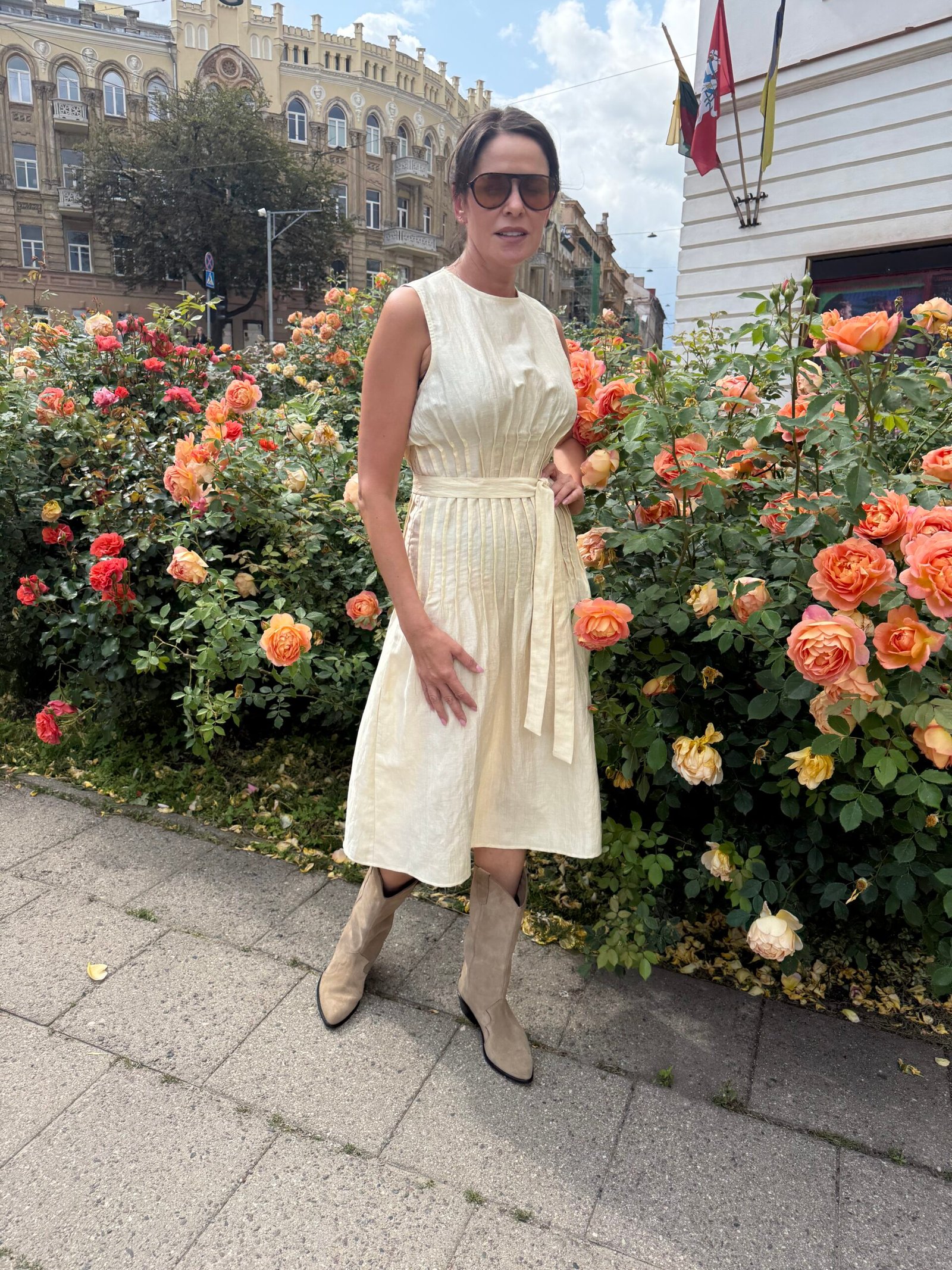 Šios suknelės išskirtinės ne tik spalva, bet ir siluetu – lengvai krentančios, kvėpuojančios, pagamintos iš lino ir tencelio derinio, kas suteikia audiniui subtilaus žvilgumo. Klostės liemens zonoje – suteikia elegnancijos, išryškina moteriškumą.