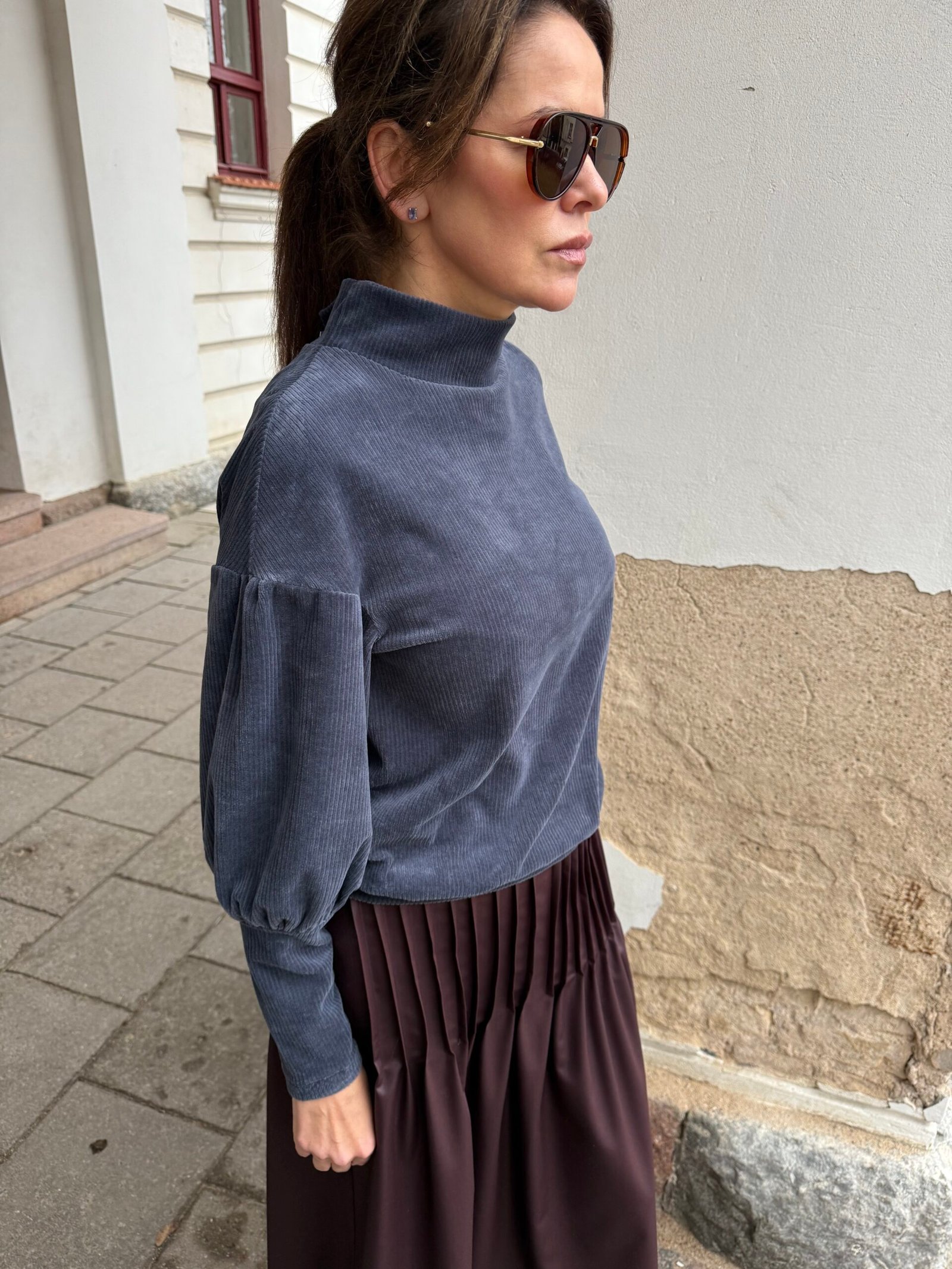 Minkštas, krentantis veliuras švelniai apgaubia kūną, suteikia jaukumo pojūtį ir leidžia jaustis patogiai visą dieną. Tai drabužis, kuriame susijungia natūralumas, komfortas ir subtili elegancija.