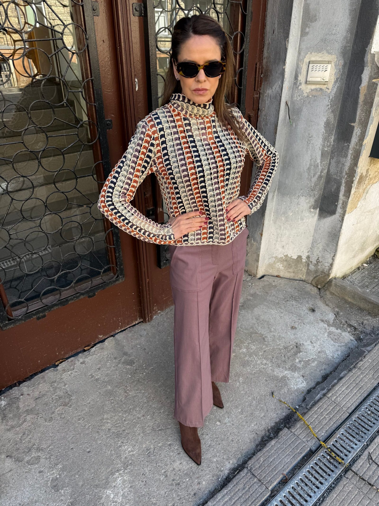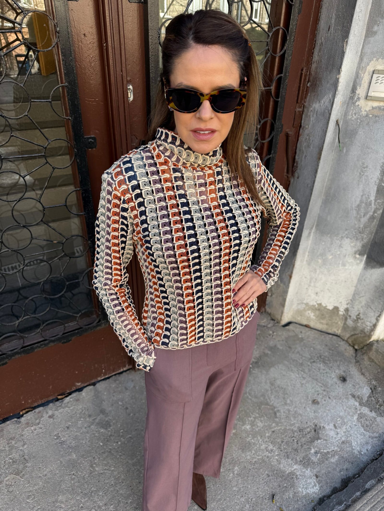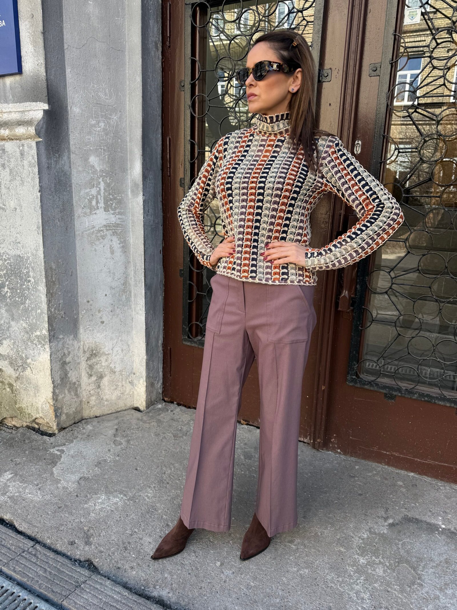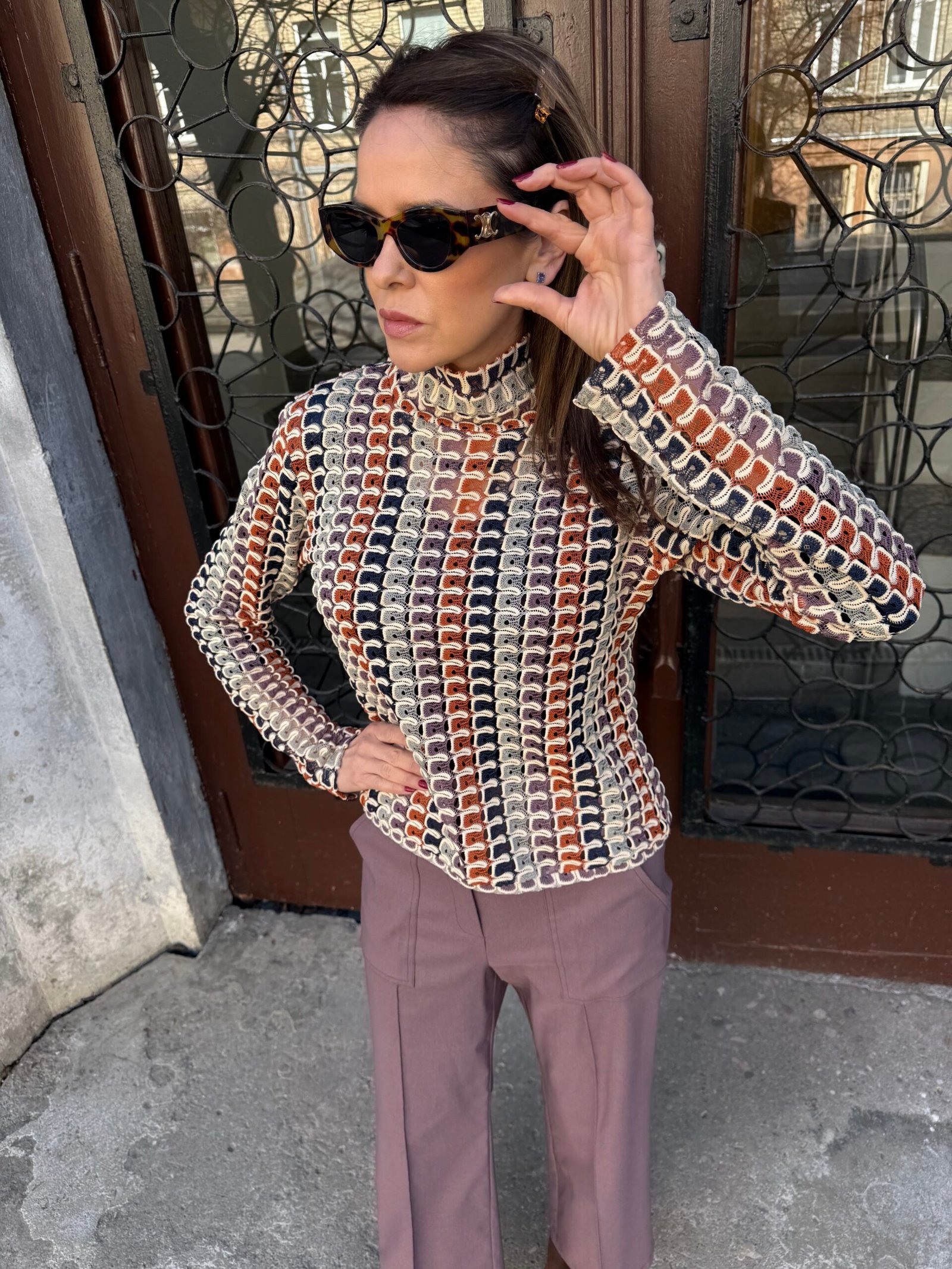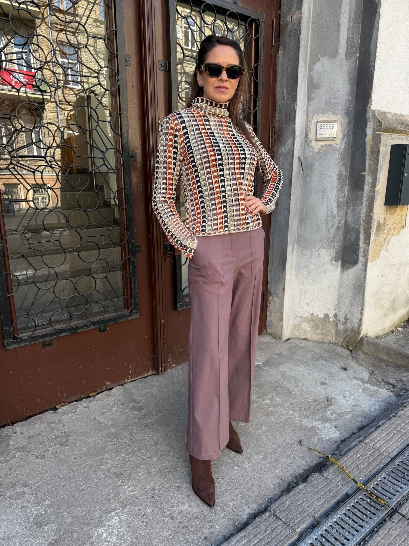 Perregimo audinio golfas, kuris subtiliai išsiskiria ir suteikia įvaizdžiui charakterio. Laisvai krentantis siluetas užtikrina komfortą ir eleganciją vienu metu.