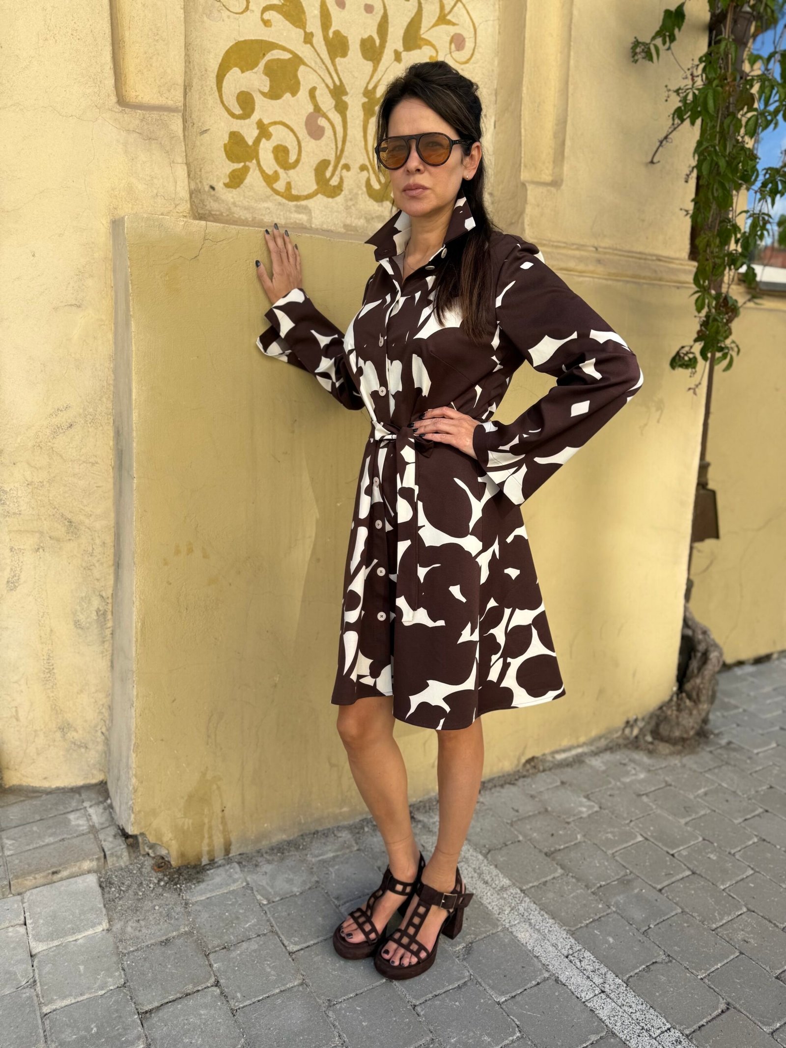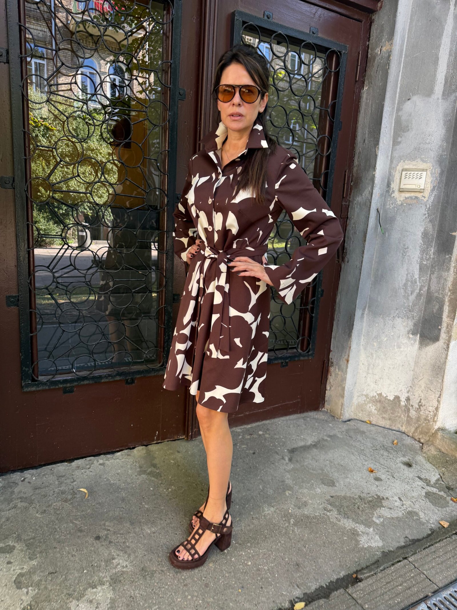 Elegantiška ir patogi suknelė iki kelių, pasiūta iš standaus, formą laikančio medvilninio audinio. „Marškinių” tipo siluetas suteikia išskirtinumo, o švelni, tačiau tvirta medžiaga leidžia jaustis užtikrintai visą dieną.