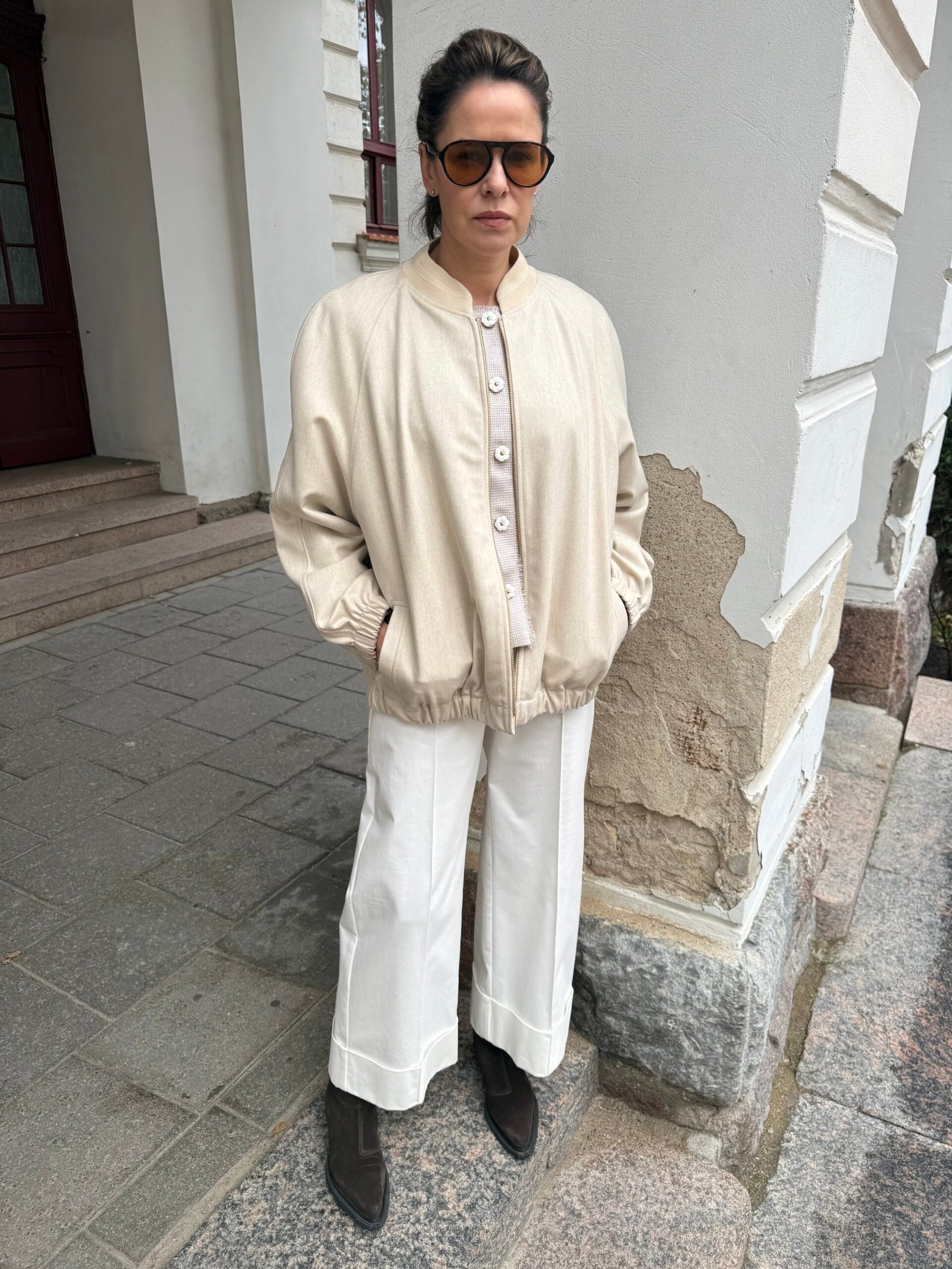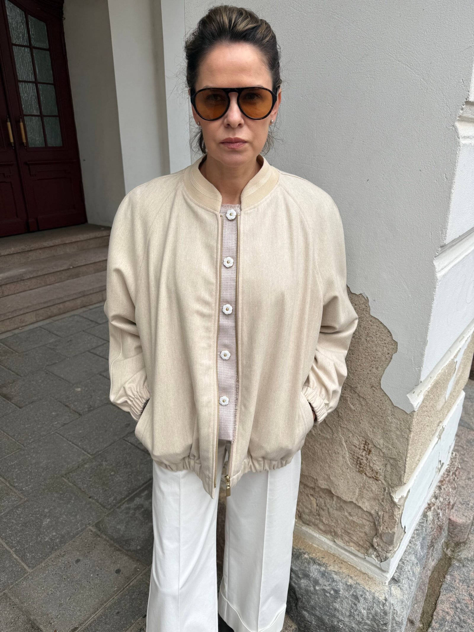 Bomberis, kuriame susitinka stilius, komfortas ir natūralūs audiniai. Minkštas, jaukus, lengvas – bet su charakteriu. Tas, kurį apsivelki ir nebenori nusivilkti.
